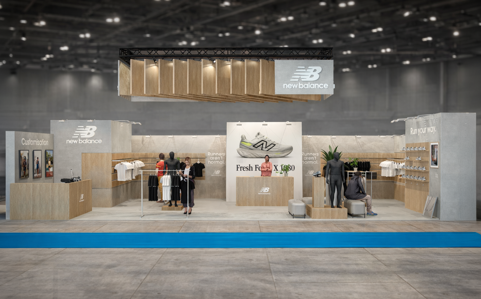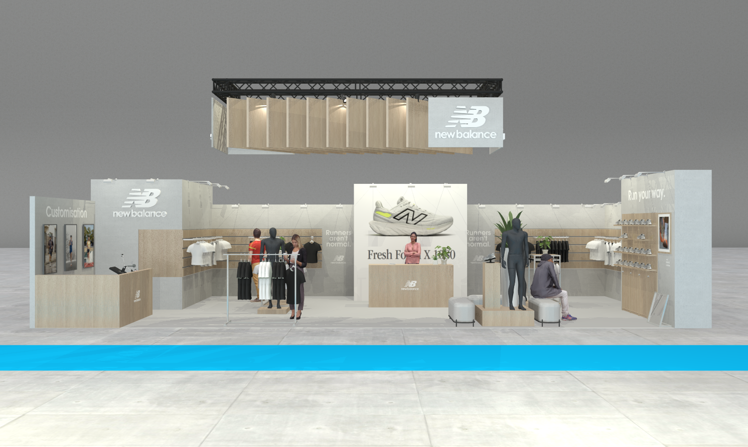 DESIGNED THE TRADE SHOW BOOTH FOR NEW BALANCE AT THE AMSTERDAM MARATHON EXPO, TAKING THE PROJECT FROM INITIAL BRIEFING THROUGH TO FINAL DESIGN DELIVERY. COLLABORATED CLOSELY WITH THE CLIENT TO TRANSLATE BRAND OBJECTIVES INTO A CLEAR AND VISUALLY STRONG BOOTH CONCEPT THAT ALIGNED WITH THEIR IDENTITY AND SPECIFIC REQUIREMENTS. RESPONSIBLE FOR DEVELOPING THE OVERALL LAYOUT, THE VISUAL DIRECTION AND PRODUCING LARGE-FORMAT GRAPHICS.